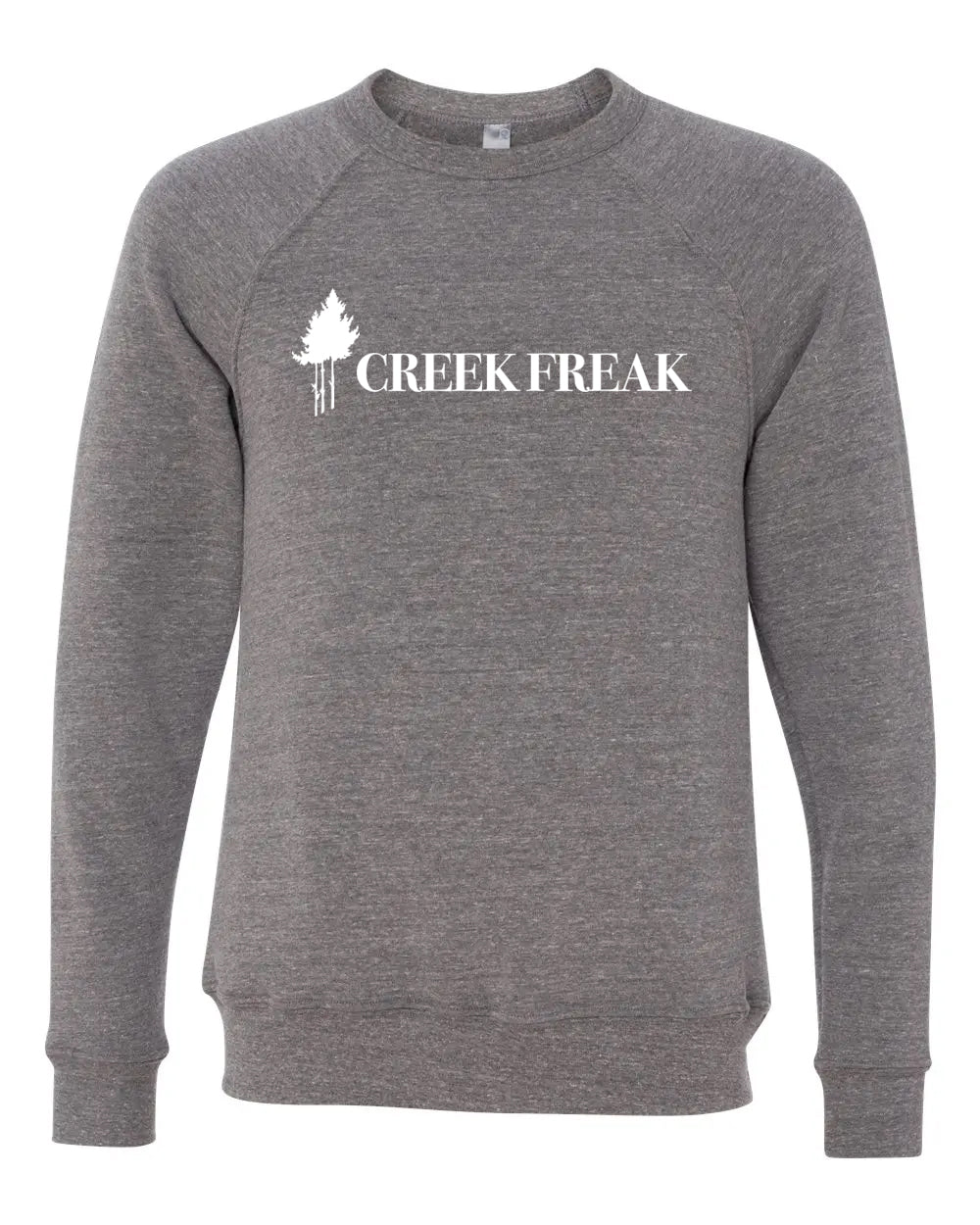 Unisex Crew Sweaters featuring the Creek Freak design. Fair trade and eco-sustainable apparel.