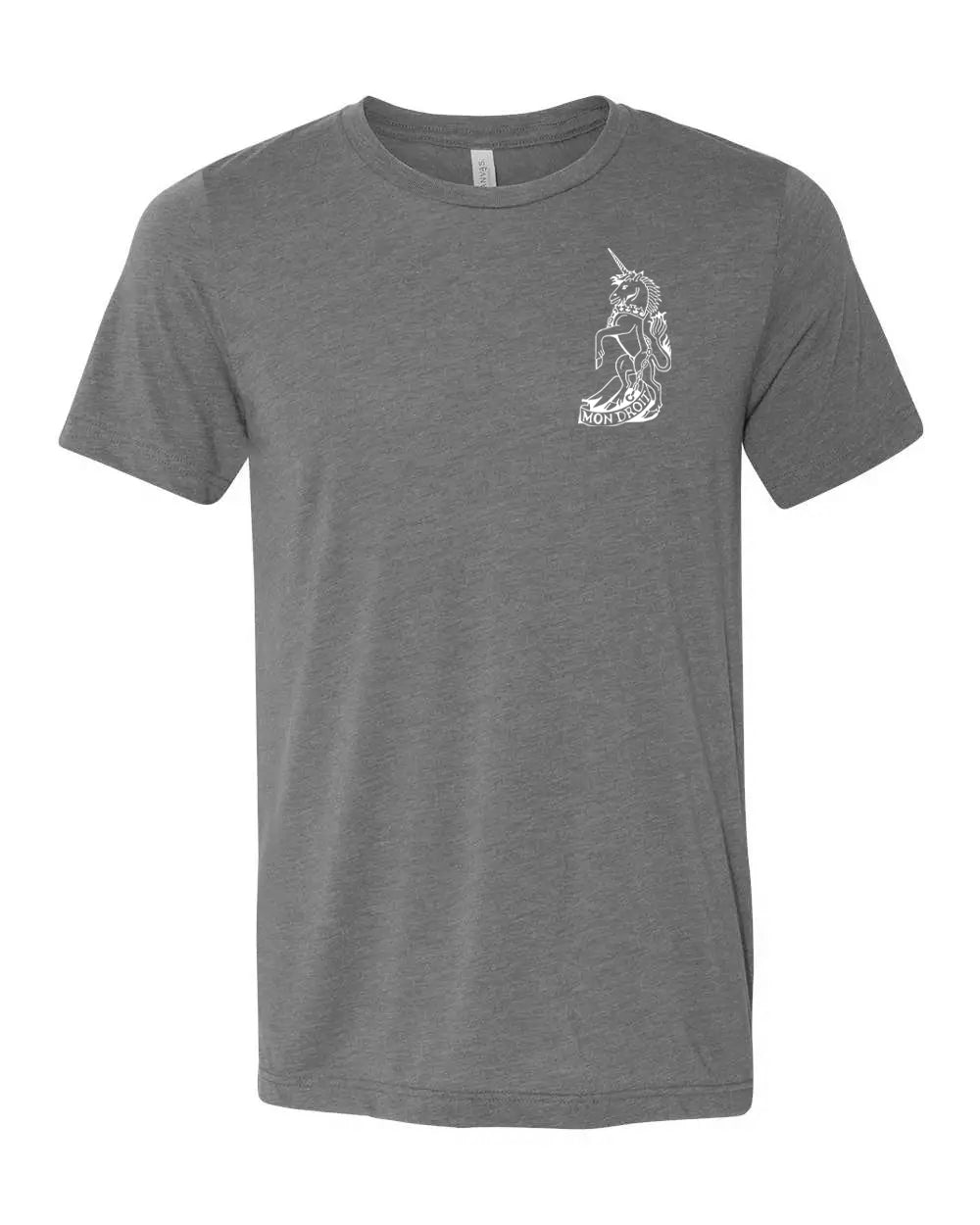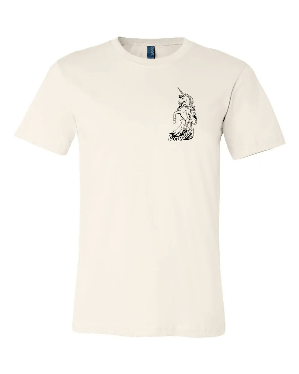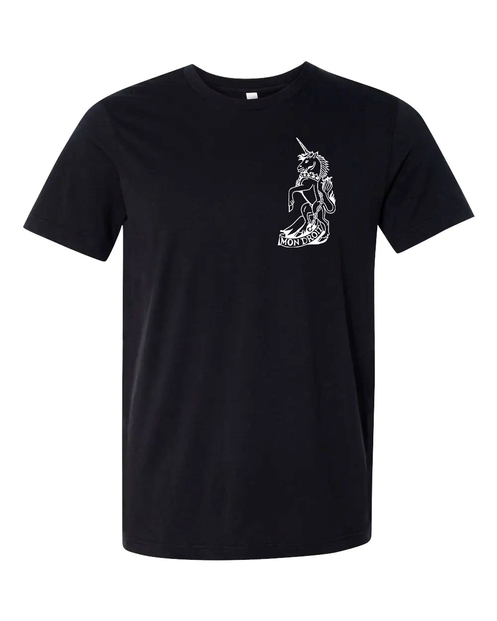 Unisex T-Shirts featuring the Shackled Unicorn Crest design. Fair trade and eco-sustainable apparel.