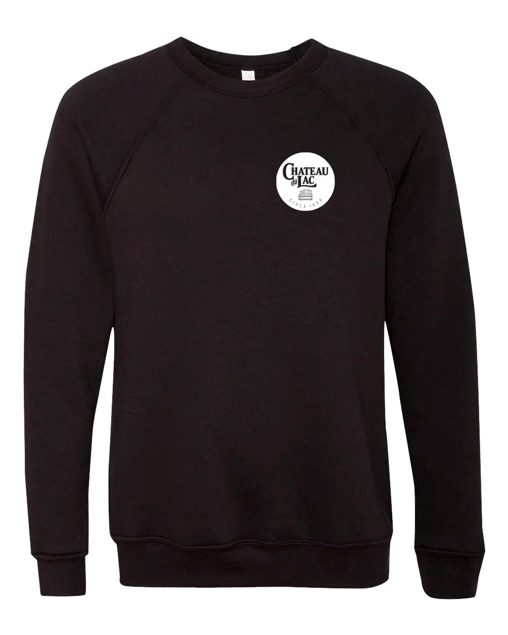 Unisex Crew Sweaters featuring the Chateau du Lac Crest design. Fair trade and eco-sustainable apparel.